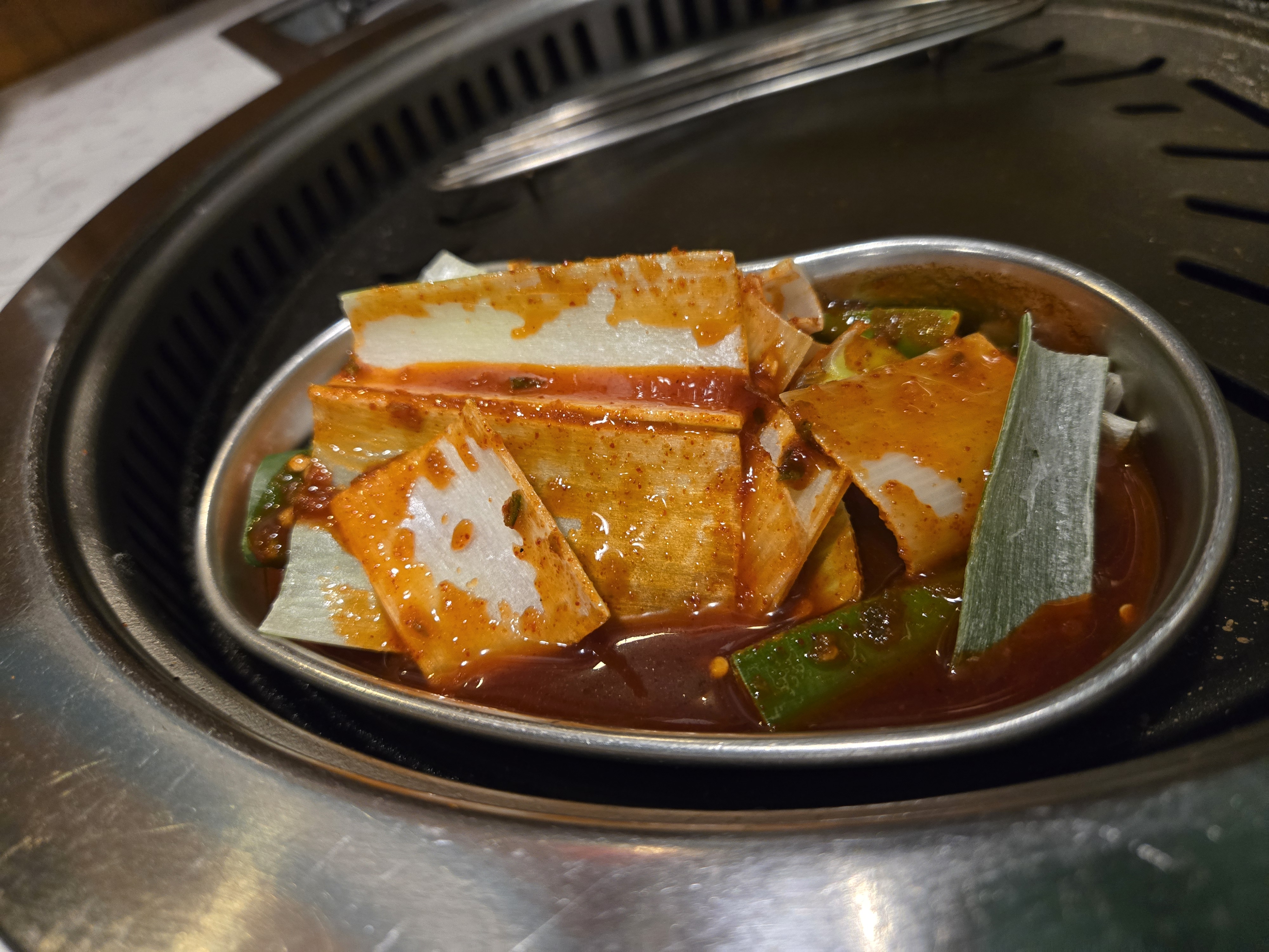 대파에 양념 얹어 익혀 먹는데, 쌈속에서 제 역할 톡톡히 합니다.