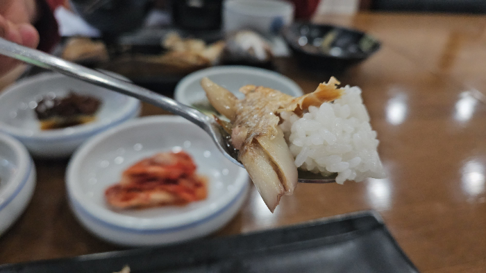 보리굴비는 먹기좋게 나왔구요 밥그릇에 물그릇이