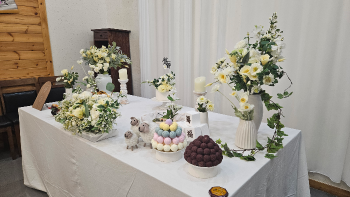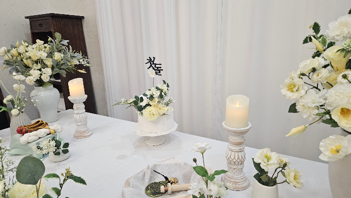 돌잔치상입니다 앞부분에 식사자리고 있고