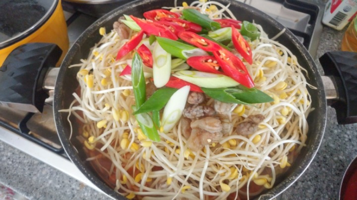 콩나물 가~~득, 오만둥이랑 모시조개도 넣고 ㅎ