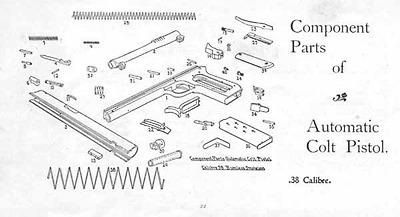 Colt M1900 분해도. 바렐에 링크가 2개 달린 것이 특징.