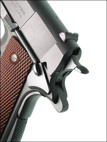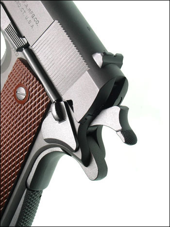 M1911A1 고유의 파카라이징 색감과는 많이 다르지만 실총의 '금속 질감'을 맛볼 수 있게끔 조색시 실버 계열을 추가했다. 프론트 사이트는 기존과 달리 별도 부품화 되어 있는데 뒷부분에 각이 져 있는 구형의 것과 달리 원형이다. 이미 발매중인 70시리즈와 같은 슬라이드 금형을 쓰고 있을 테고, 조만간 80시리즈나 1991A1같은 모델 또한 이 슬라이드를 기본으로 만들어질 예정임을 보여 주고 있다.