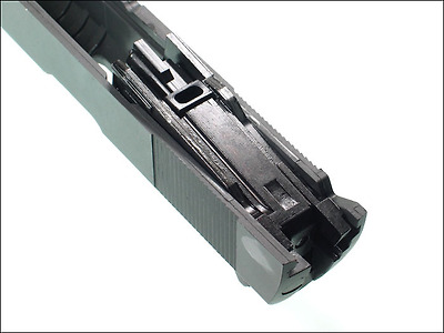 링크용 캠 뒤쪽에 스프링 구조물이 보이는데 이는 슬라이드 스톱을 단단히 고정시켜 주는 역할을 한다. 사실 내부 구조만을 놓고 보자면 오히려 구형 버전이 실총과 더 가깝지만 어짜피 조립해 놓고 보면 보이지도 않을 부분의 경우 WA에서는 실총의 리얼리티 보다는 작동성과 내구성을 살리는 방향으로 설계 초점을 맞추었다.