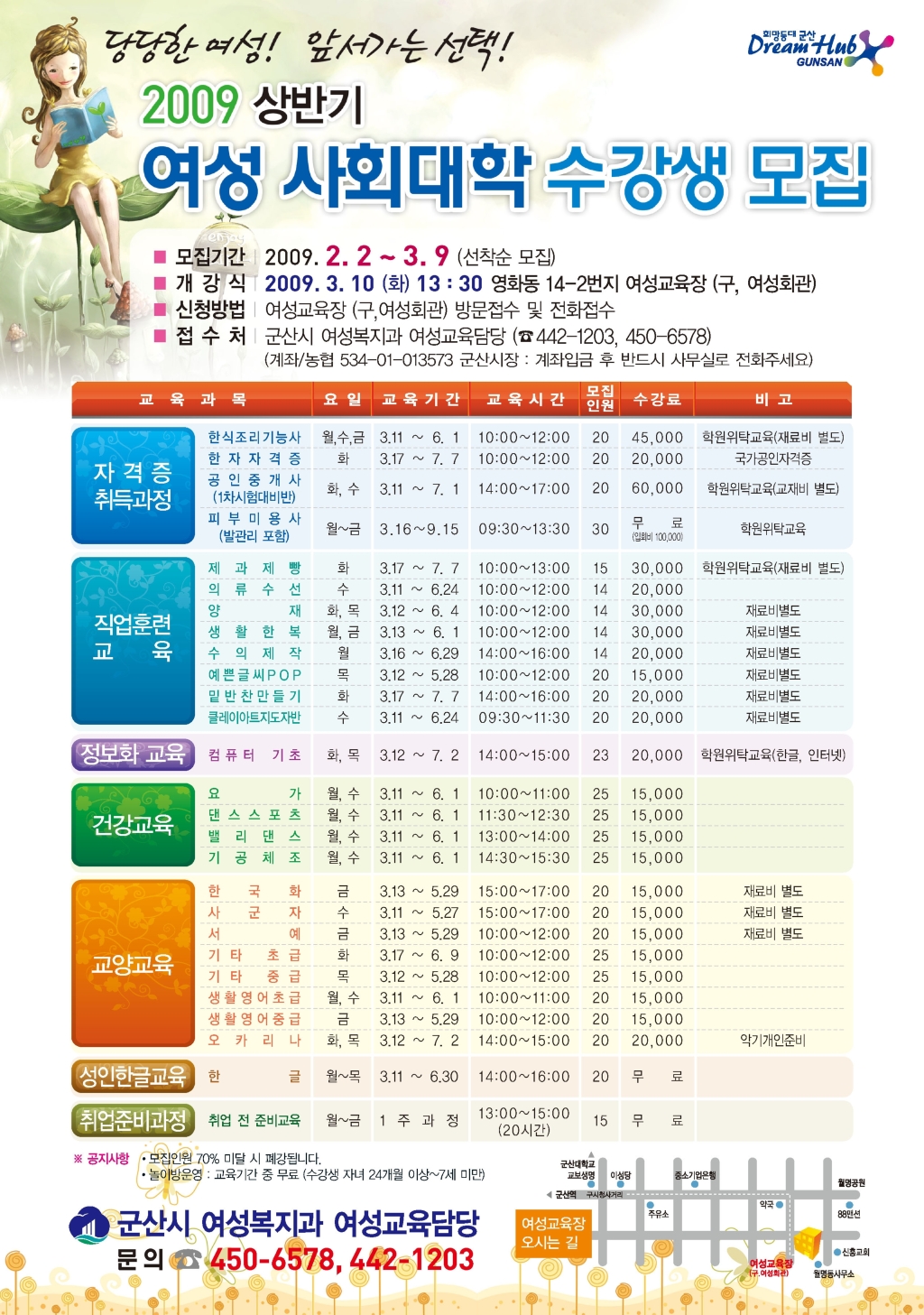 ◈ 접수 및 문의처 : 여성복지과 여성교육담당 (450-6578, 442-1203)