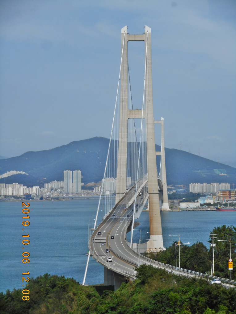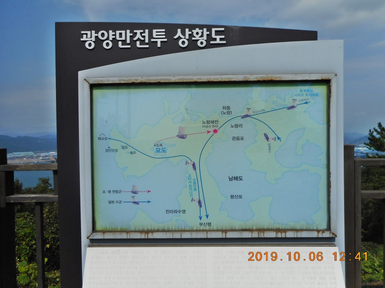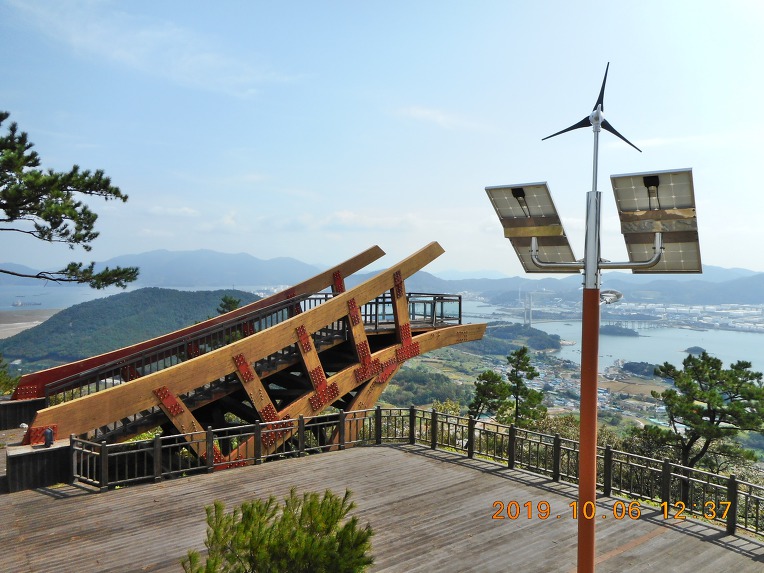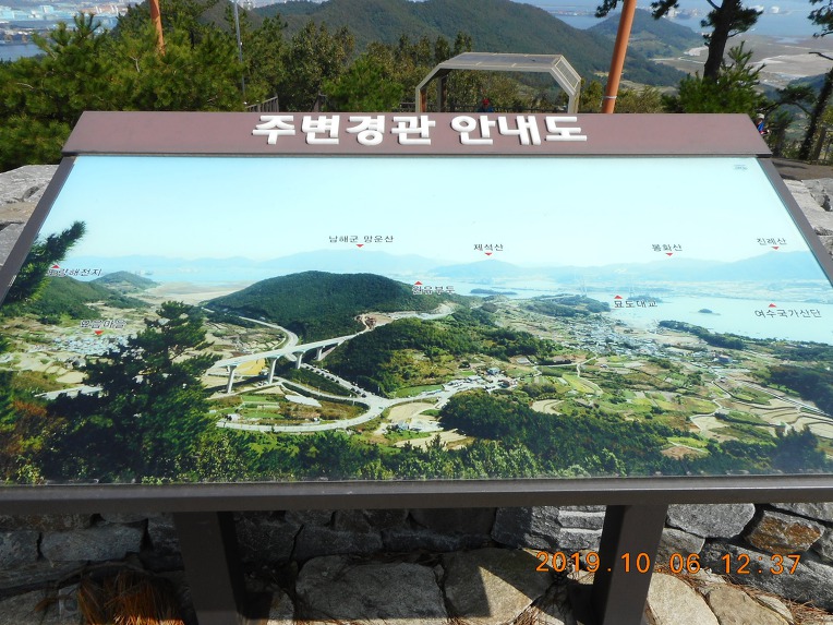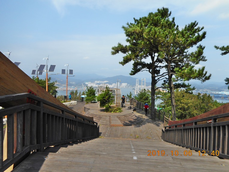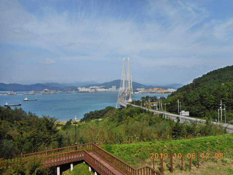 주변 일대를 둘러 보노라니 바다 건너 멀리로 이순신대교가 보이고, 그 우측으로는 포스코 광양 제철소를