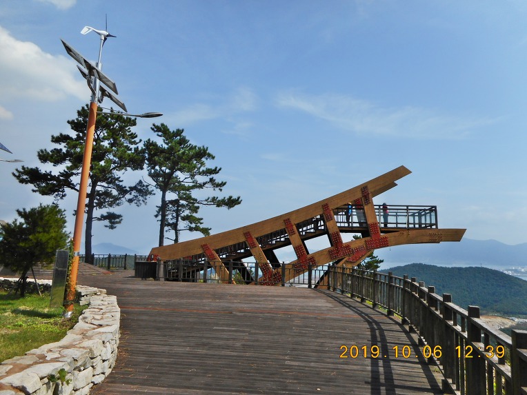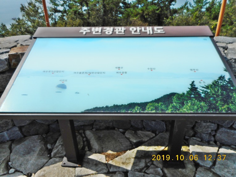 막상 팔각정 위로 올라가보나 나무사이로 여수국가산업단지쪽만 일부 조망이 될뿐, 주위의 나무들 때문에