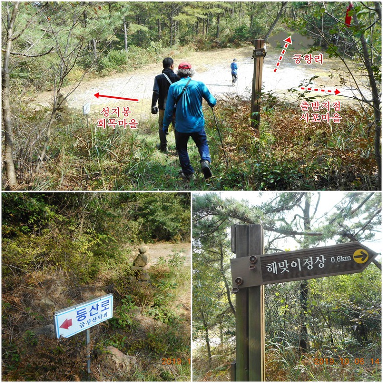 임도로 진행해야 성지봉으로 이어지는데,순간적인 착각으로 선두가 건너편 궁항리 쪽으로 진행하는 바람에 모두들