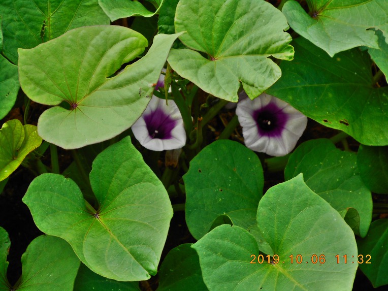 길가 고구마밭에 '행운을 불러준다'고 알려져 있는,참으로 보기 어려운 고구마꽃이 피어 있는지라