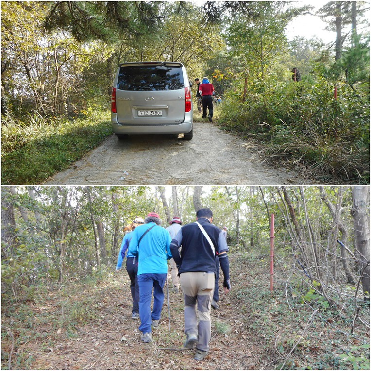 3개정도의 자그마한 야산을 보너스로 더 답사하기로 하고 산행 들머리로 이동합니다.