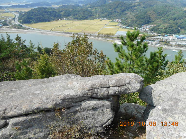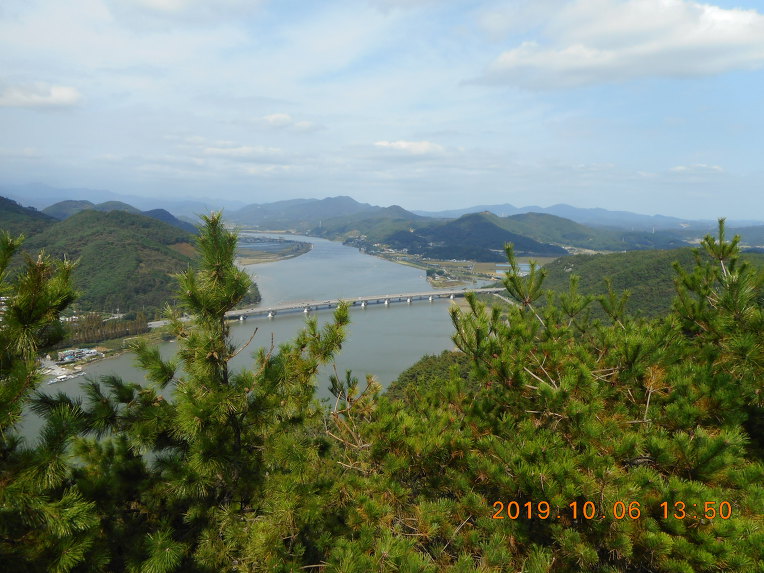 바로 발아래로 섬진강이 유유히 흘러가고, 건너편으로는 남해 고속도로가 쭉 뻗어가는게 조망이 되며, 바로