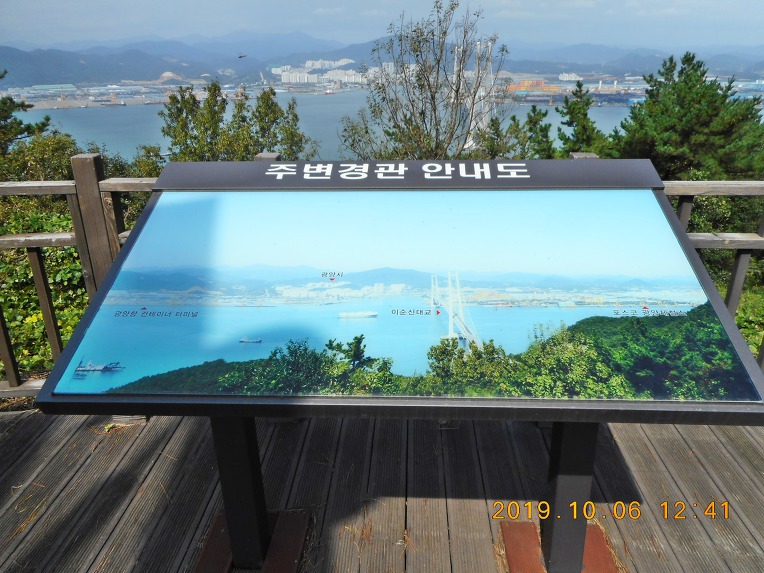 전면으로 광양국가산업단지와 광양항을 비롯해서 광양시 주변 산군들까지 시원스럽게 펼쳐지나, 끼어있는