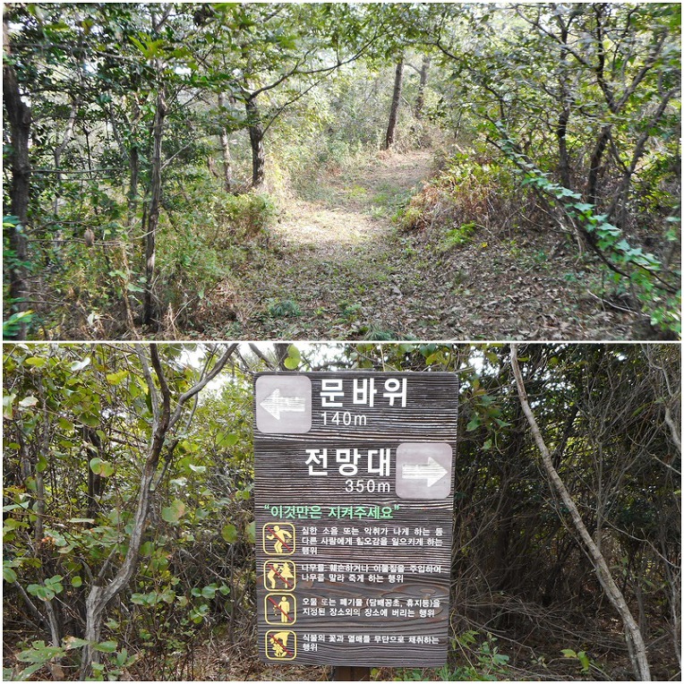 5분여후 문바위 전망데크가 나오는데, 올라서보나 주변 나무들 때문에 정작 문바위는 보이지를 않고~~~