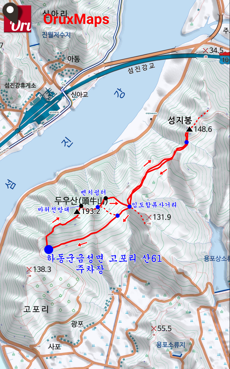 -두우산 정상-성지봉 정상-임도-'고포리 산 61' 주차장(3.59Km)-차량이동-'하동군 고전면 전도리