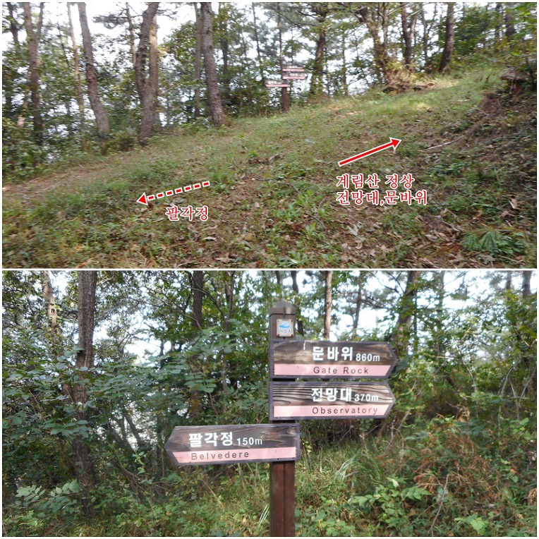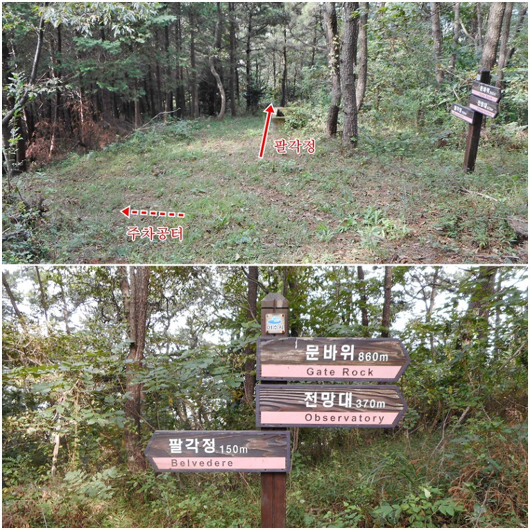 왔던길을 되짚어 팔각정 갈림길까지 되돌아 나간뒤, 150m정도 떨어져있는 팔각정으로 진행합니다.