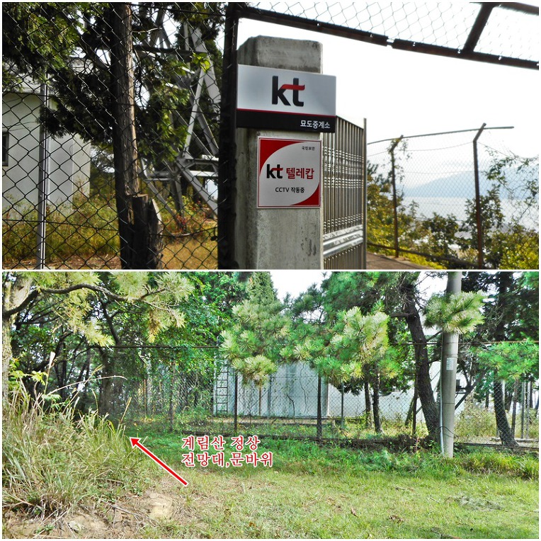 얼마 안올라가서 통신탑이 우뚝 서있는 "KT묘도 중계소" 앞으로 올라섭니다.