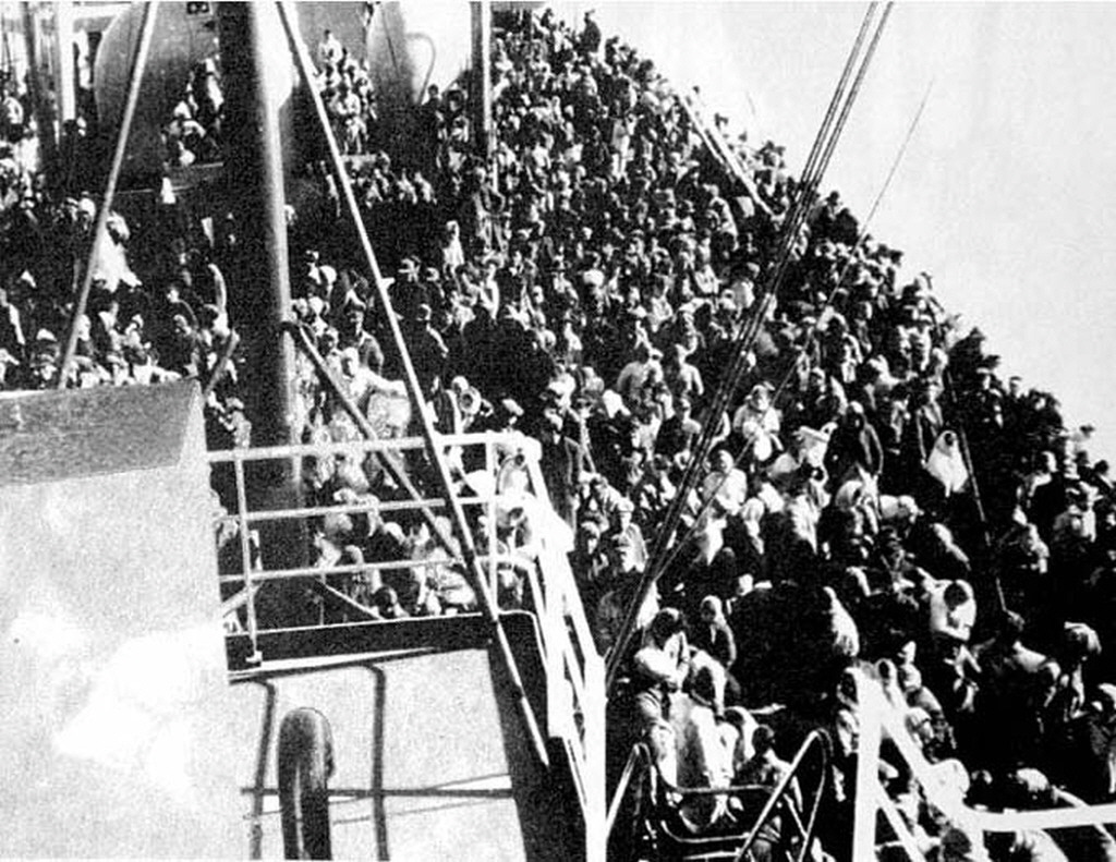 해안에 남아 있던 14,000 명의 피난민 모두가 승선할 때까지 포화가 쏟아지고 있는 항구에 정박해 있었습니다.