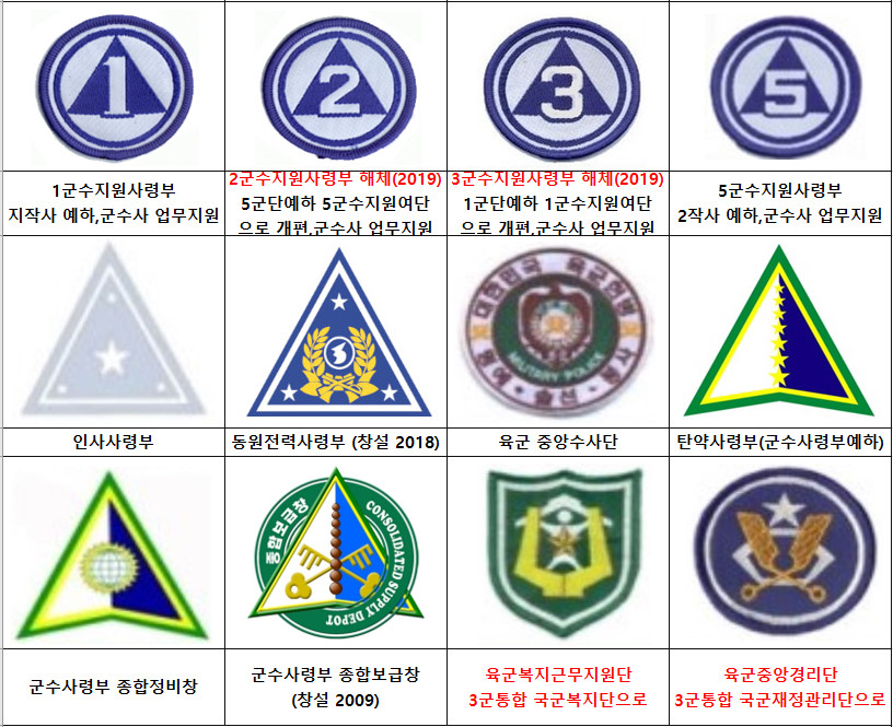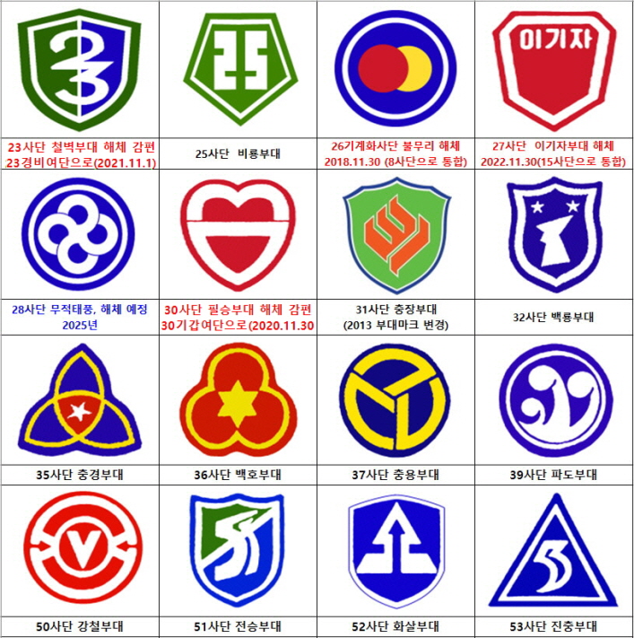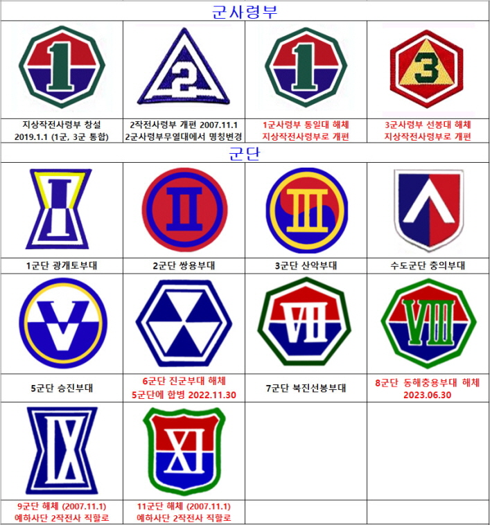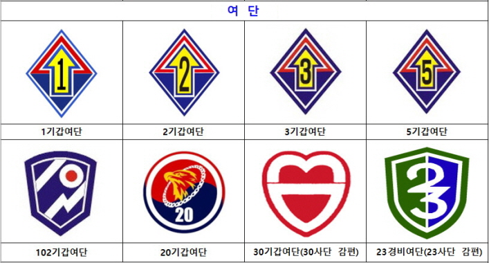 ㅇ 육군 군사령부, 군단, 사단, 기갑여단 부대마크