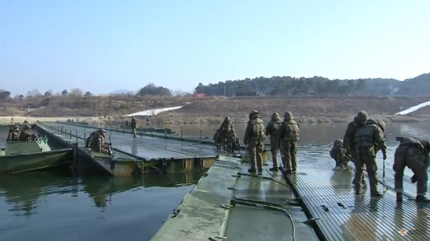 2019년 야전공병단 요원들의 문.부교 설치 모습