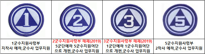 1,3군 사령부 -->지작사로 통합에 따른 예하 1,2,3 군수지원사령부 개편