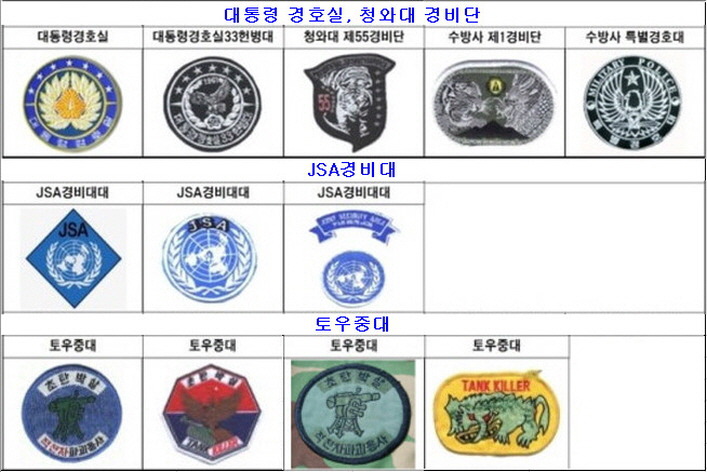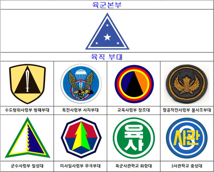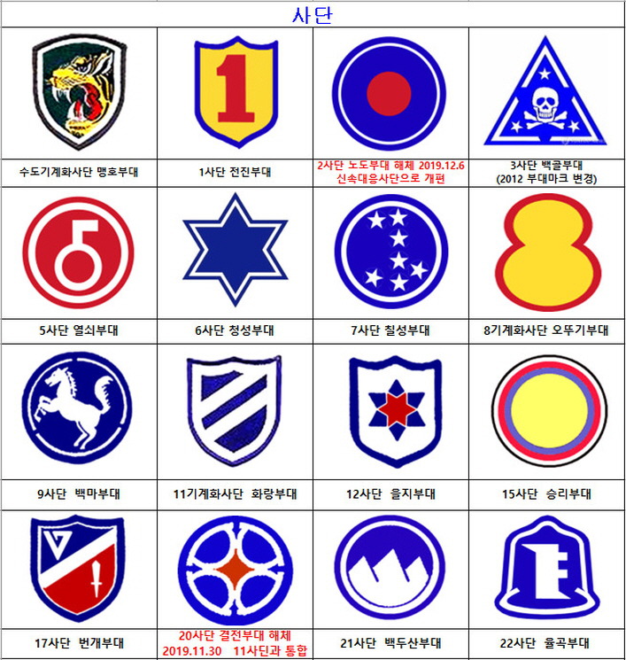 ㅇ 육군 군사령부, 군단, 사단, 기갑여단 부대마크