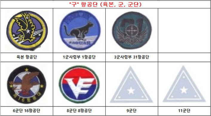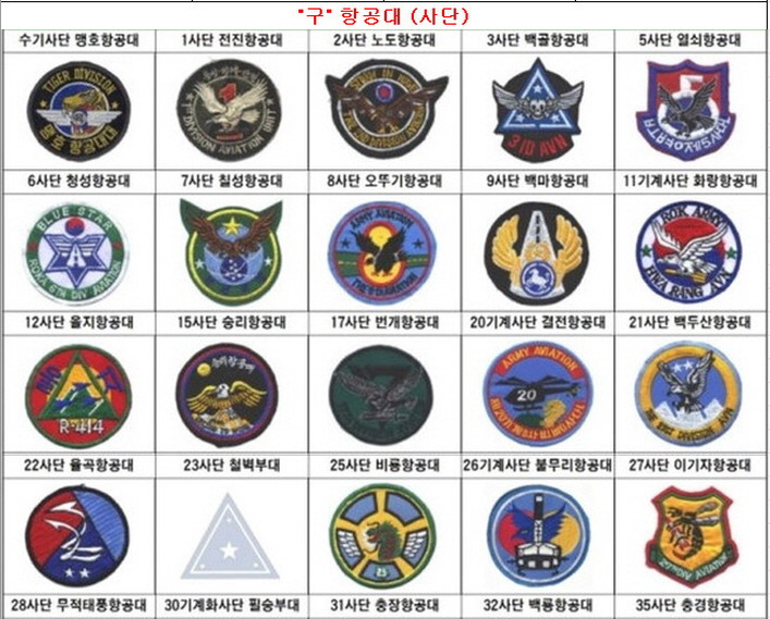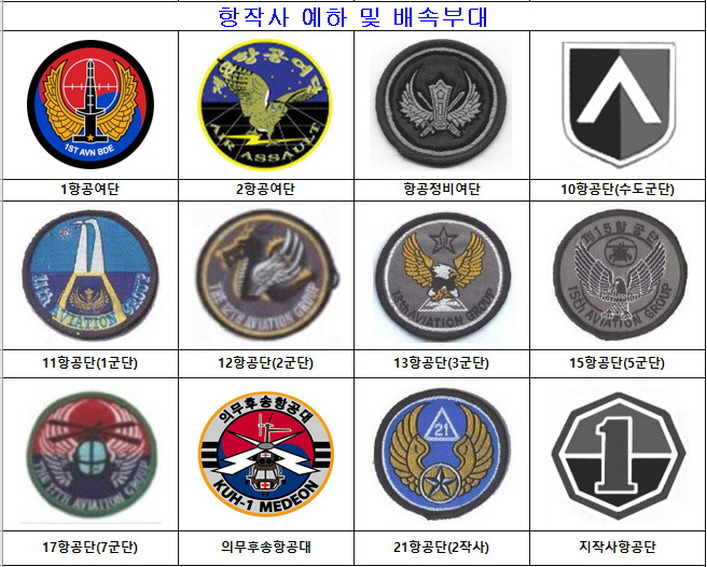 ㅇ 육군 항작사 창설(1999년)과 지작사 창설(2019년)로 통합, 해체된 항공단 항공대 부대마크