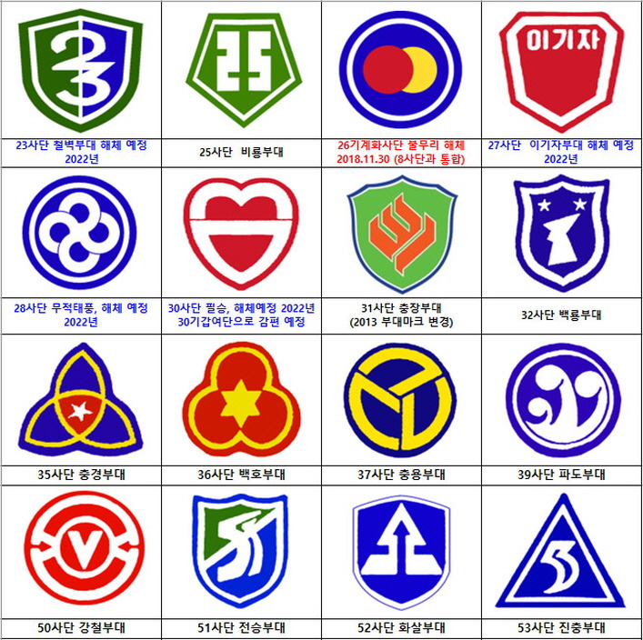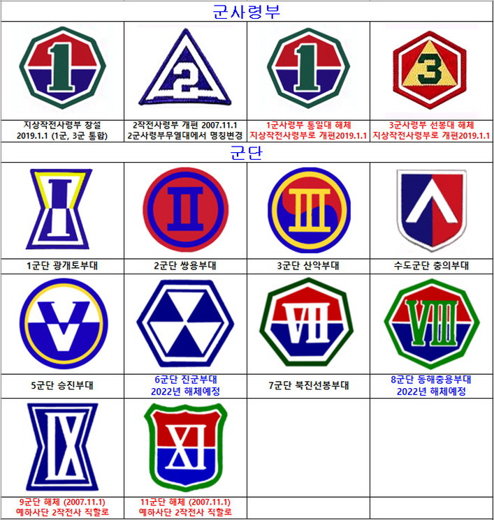 위 2개 군단, 4개 사단 2022년 까지 해체 예정 입니다.