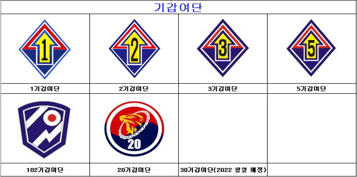 7)1기갑여단, 2기갑여단, 3기갑여단, 5기갑여단, 102기갑여단