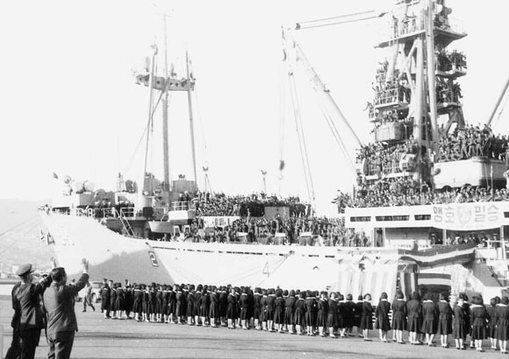 맹호 혜산진부대(26연대) 부산항 출발66.4.10