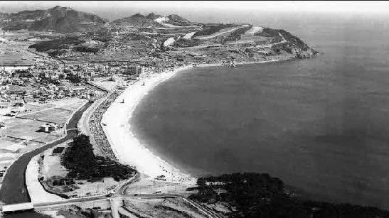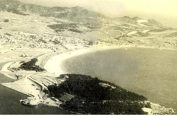 다시 담배 한 대 피고 이 사진을 봅니다. 1960년대의 해운대입니다. 미국에 의해 해방된 부산에도 미군들이 들어옵니다. 특히 한국전쟁이 터지자 미군은 해운대지역을 군사비행장과 군사시설지역으로 만들어 버립니다. 바로 수영비행장(지금의 센텀시티)이 그랬고 동백섬(지금의 동백섬주차장은 미군부대였고, 그 앞의 부두시설은 미군물자수송을 위해 그때 미군들에 의해 만들어졌다. 그리고 한국군대가 주둔했고 1990년대에 완전히 개방되었다.)이 그랬고, 송림공원(미군이 주둔하다 한국군이 주둔하였음이 그랬으며, 미포 앞의 극동호텔과 뒤(이곳은 지금 118층의 해운대관광리조트가 들어온다)가 그랬다.