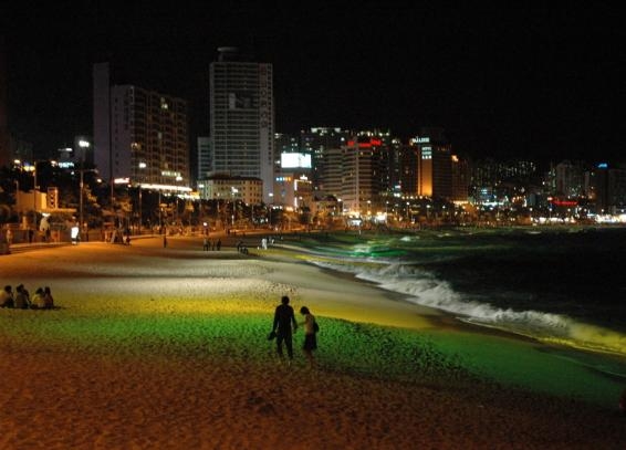 2000년의 해운대 야경입니다. 지금은 이런 조명이 다 없어졌지만 2000년도에는 야경에 조명칼라를 넣어서 알룩달룩하게 만들었습니다. 꼭 해운대해수욕장을 나이트클럽으로 만들어버렸습니다. 그때 참 수치스럽고 한심했습니다. 디자인을 아는 한 사람으로 행정이 아름다운 자연 그대로의 자연을 돈을 들여서 망쳐버렸으니까요...