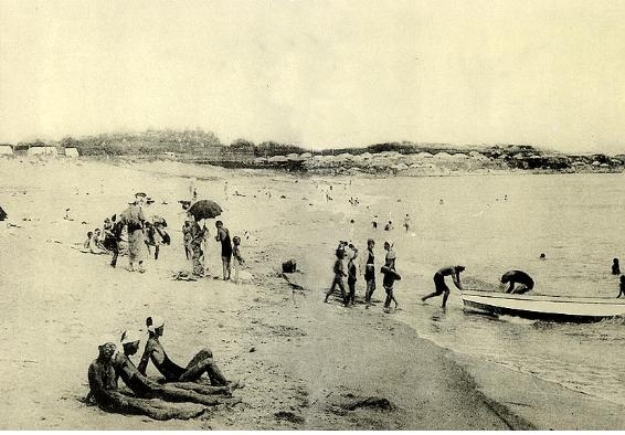1930년대의 해운대 해수욕장입니다. 자세히 보시면 아시겠지만 전부 일본인들입니다. 사진 앞에 머리에 수건을 쓴 것 형태도 전형적인 일본이 스타일이고, 기모노와 하카마를 한 여자와 남자를 보실 수가 있습니다. 그리고 작은 보트도 일본식으로 보입니다. 수영복과 우끼(당시에 자동차 튜브를 사용)가 보입니다. 당시 우리 땅 우리지역인 해운대 해수욕장은 일본인만의 최고의 휴양지였습니다. 마음이 찹찹합니다. 담배한대를 해야겠습니다. 우측이 미포지역인 듯 하며, 달맞이지역(와우산)이 보이질 않습니다. 엇, 분명히 사진에는 1930년대 해운대 사진이라는 문구가 있었는데...그러면 사진 설명이 잘못된 것인지...아니면 사진이 지워졌는지(이때 사진은 필름인화라 오래되면 사진이 부셔짐)는 정확히 알 수 가 없네요...