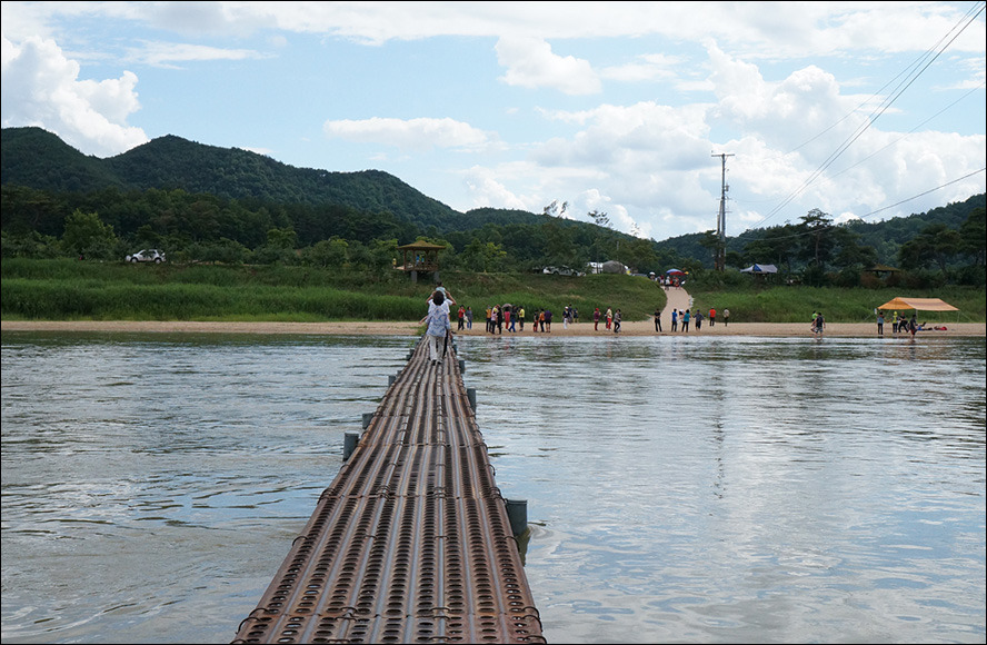 이 철판을 모아 만든 대표적인 다리가 경북 예천 내성천 회룡포를 건너는 섭다리 ‘뽕뽕다리’ 입니다.
