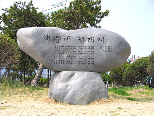 해운대 해수욕장 중앙쯤에 있는 해운대 엘레지 노래비