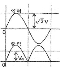 51. 그림은 정류회로의 전압파형이다. 입력 전압은 사인파로 실효값이 100[V]일 때 출력파형의 평균값 Va[V]는?