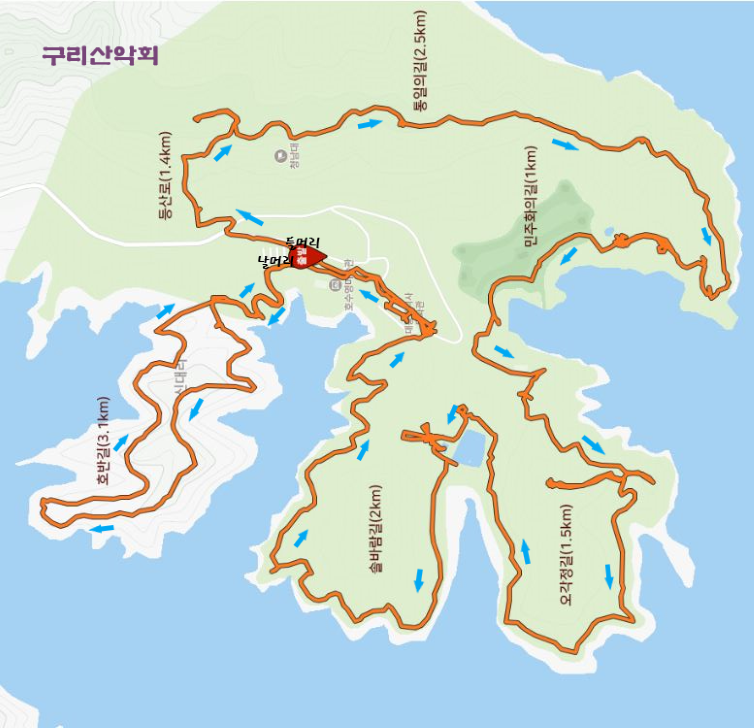 *오각정길 : 박정희대통령동상 - 봉황의숲 - 오각정 – 본관(1.5km/1시간20분)