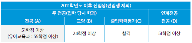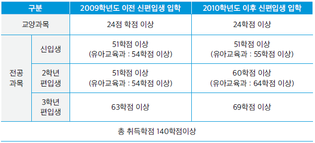 최소 취득학점을 취득해야 합니다. 그 학점은 다음과 같이 2009학년도 이전 신·편입생으로