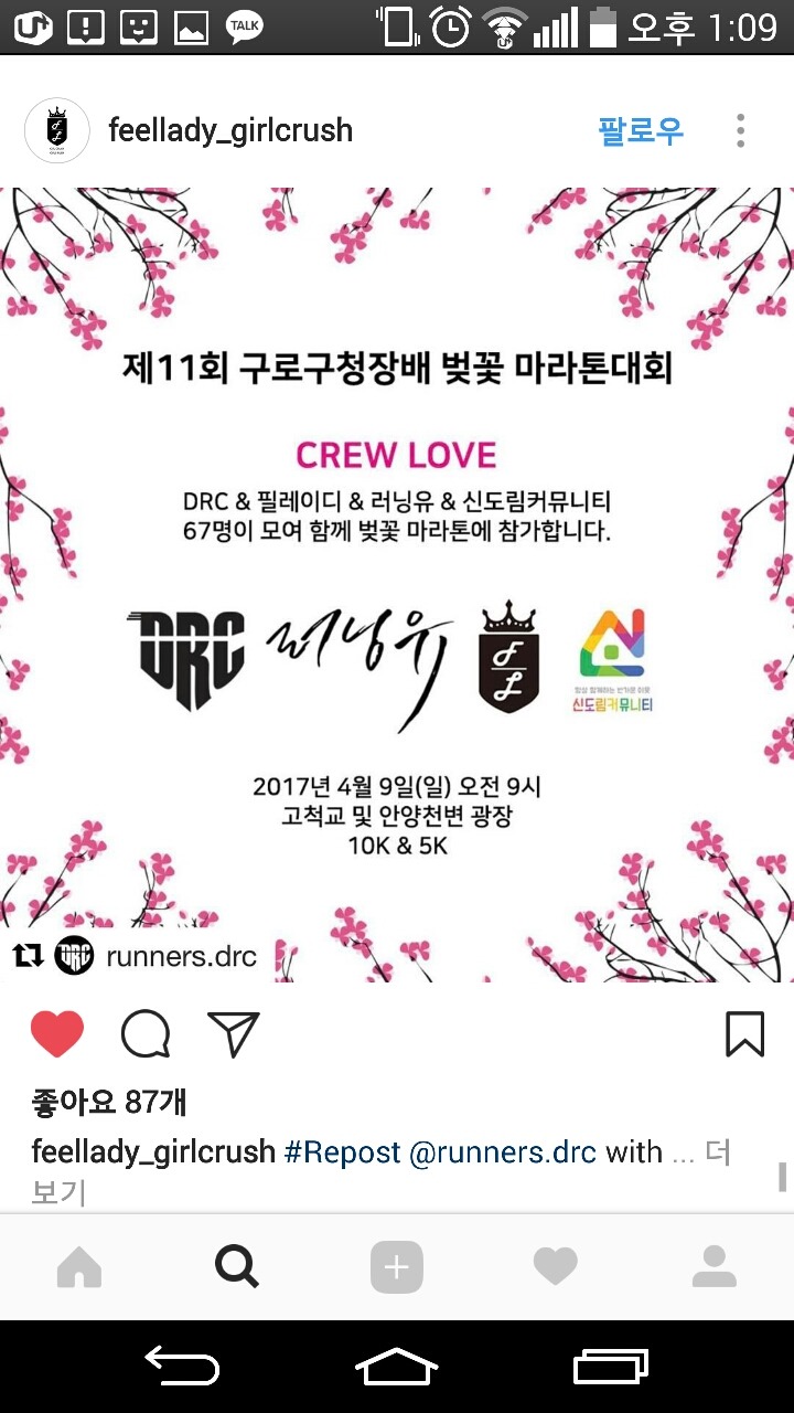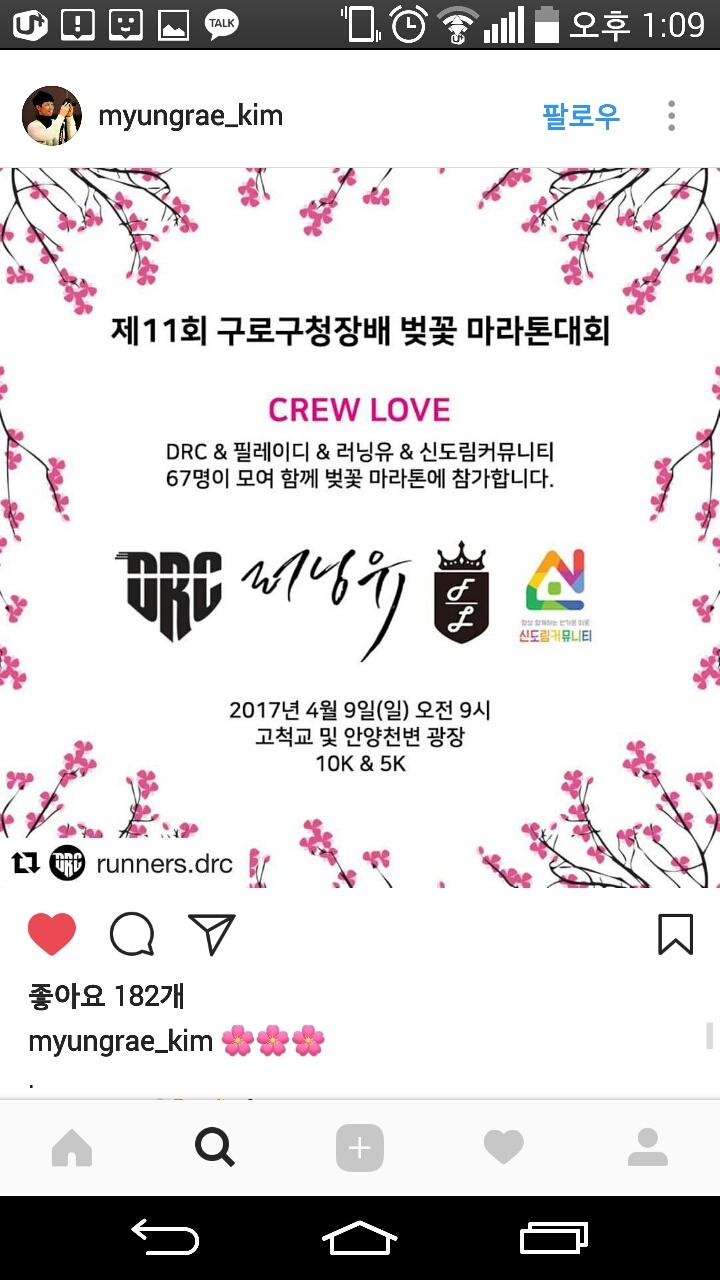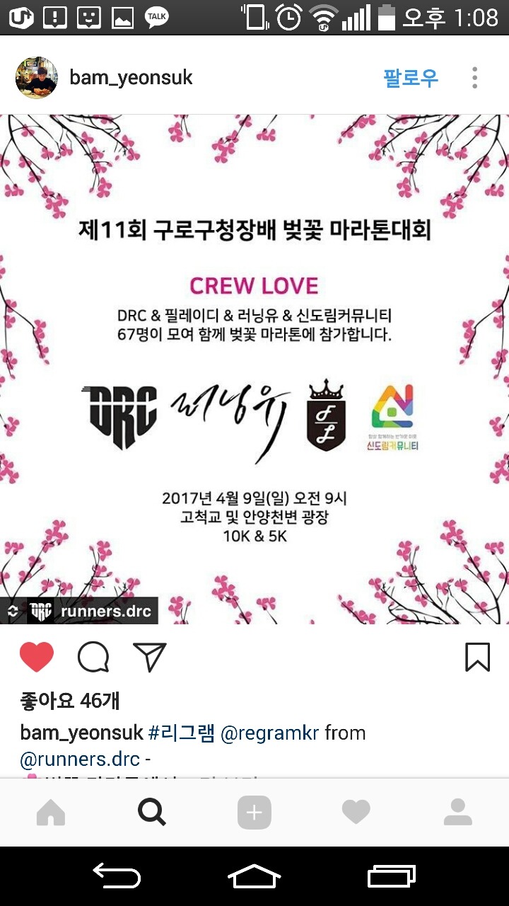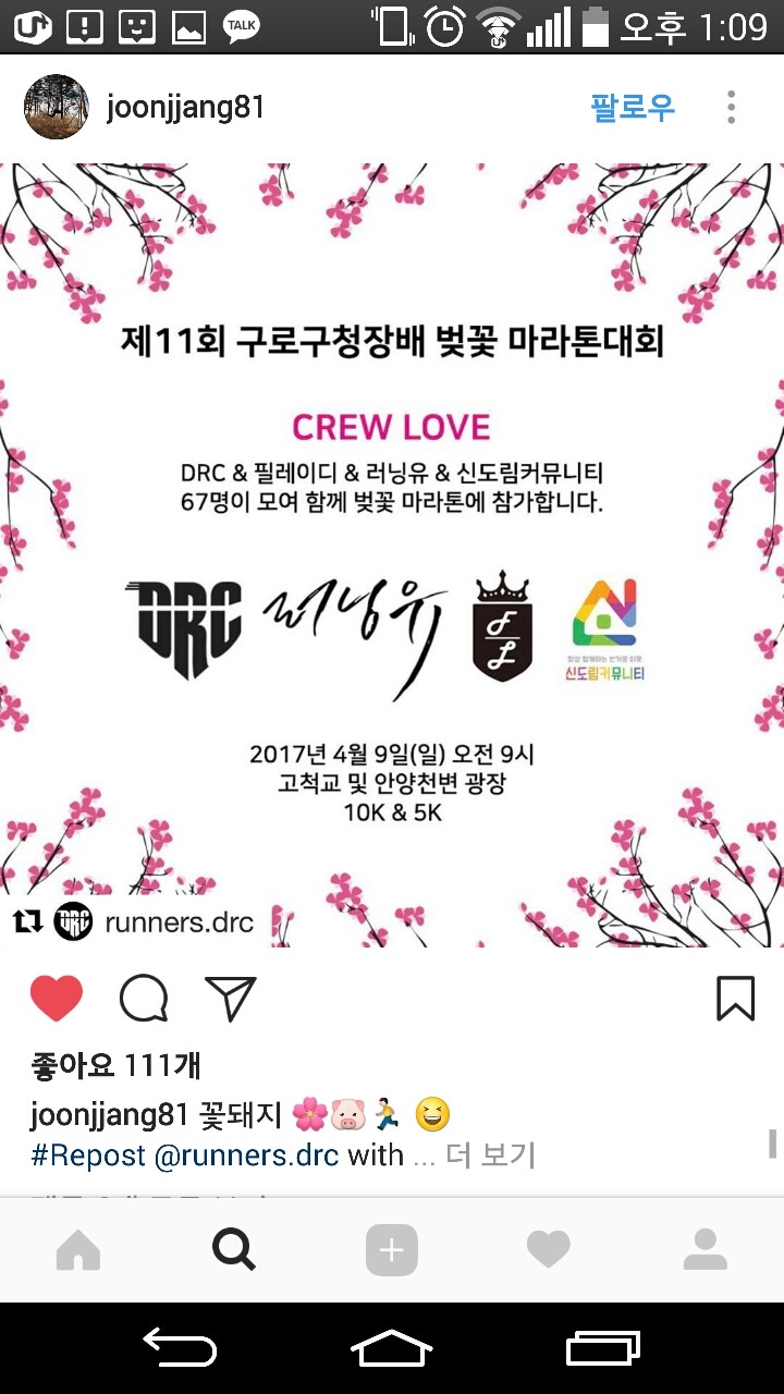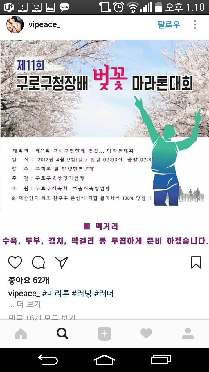 인스타그램을 통해 본 후기 작성자늑대미소|작성시간17.04.16|조회수30 목록 댓글 0 글자크기 작게가 글자크기 크게가 젊은 참가자들이 요즘 유행하는 인스타그램에 벚꽃마라톤 후기를 올려주네요.사진도 이쁘고 글도 귀엽고..혼자 보기 아까워 올려 드립니다.감사합니다. 다음검색 현재 게시글 추가 기능 열기 북마크 공유하기 신고 센터로 신고 댓글 댓글 0 댓글쓰기 답글쓰기 댓글 리스트