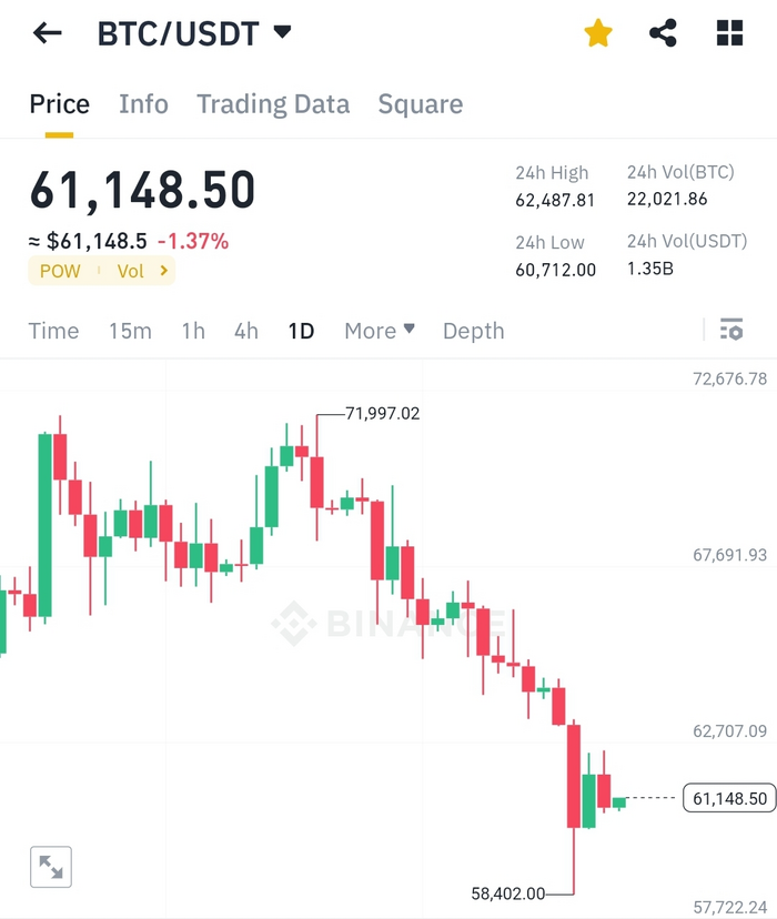 비트코인은 과매도에 따른 반등으로 지난 25일 2.51% 반등하는데 성공했지만 상승폭의 대부분을 반납하고 6만1000달러대에 머물러있다.