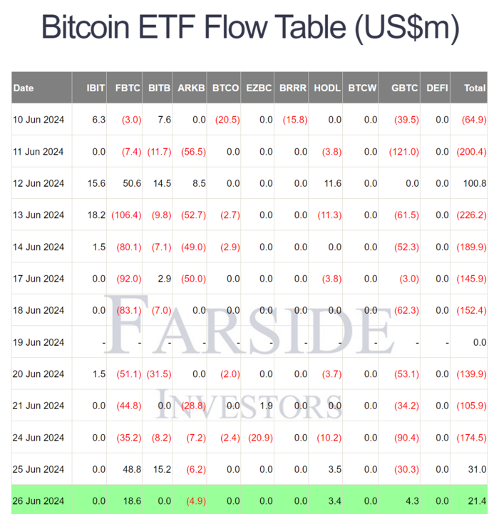 피델리티의 FBTC가 순유입으로 전환됐고, 8거래일 연속 순유출을 기록했던 그레이스케일의 GBTC도 작게나마 순유입을 기록하면서 전체 자금흐름도 순유입을 기록했다.