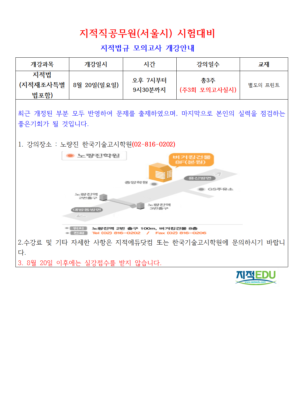 서울시 지적법규 모의고사 개강안내 작성자u_love♡|작성시간17.08.15|조회수108 목록 댓글 0 글자크기 작게가 글자크기 크게가 다음검색 현재 게시글 추가 기능 열기 북마크 공유하기 신고 센터로 신고 댓글 댓글 0 댓글쓰기 답글쓰기 댓글 리스트