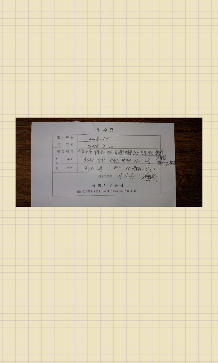 비서님에게 올리는 청원법 제4조 1항에 의한 청원서 #