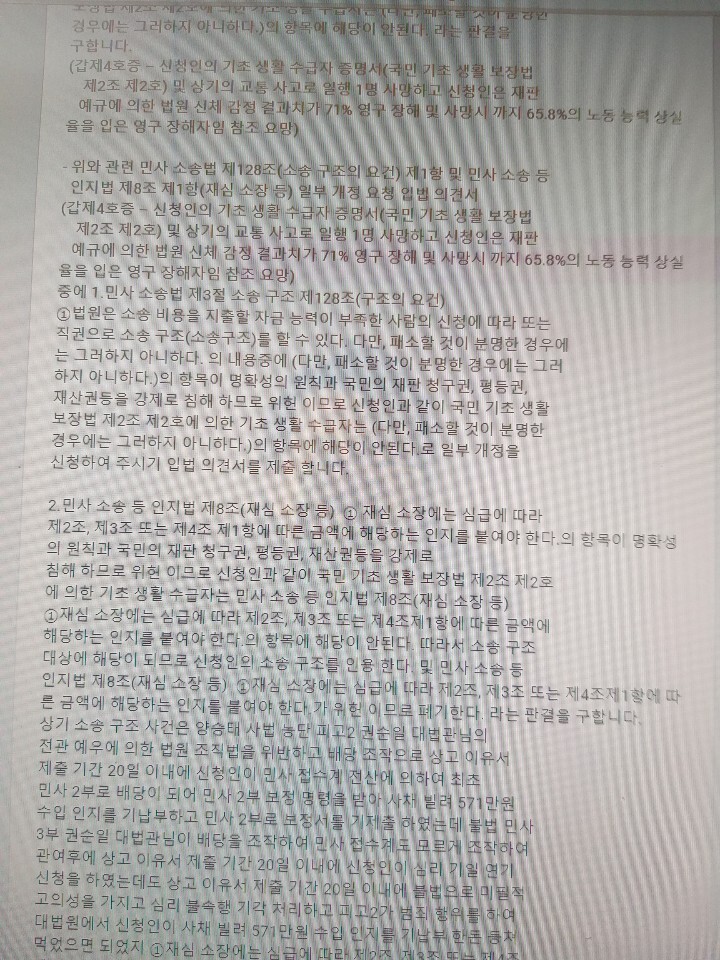 민사 소송법 제128조 소송 구조의 요건 - 제1항및 민사 소송등 인지법 제8조 제1항 재심 소장등 일부 개정 법률안