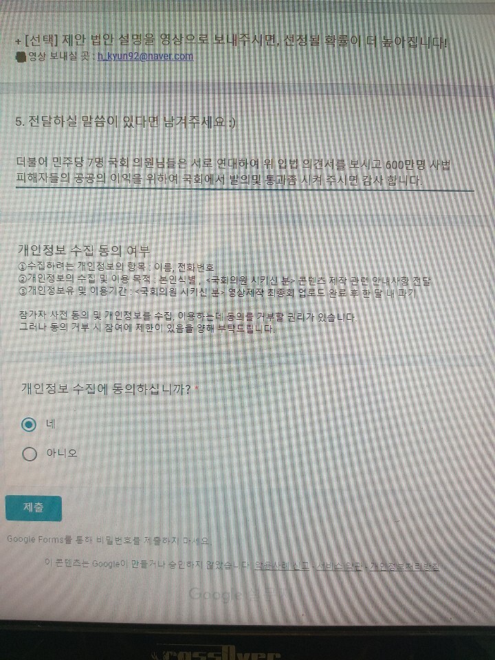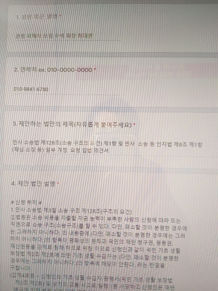 * 국회 의원 시키는분! 국민 입법 제안 공모-더불어 민주당 박주민 의원님등 7명의 법안 제안 공모에 아래 7개 민생 순위 1순위 신설 법안 입법 의견서 기제출함 *