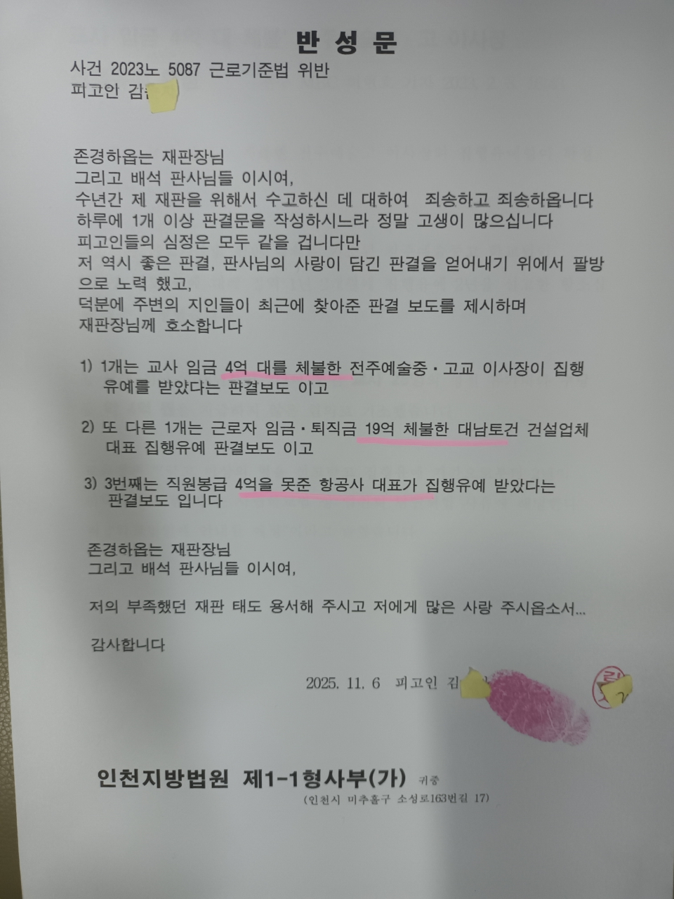 반성문에 구수회가 찾아준 위 언론판결 첨부했습니다
