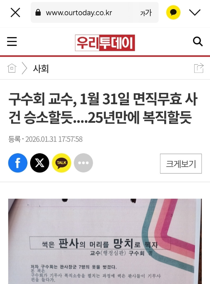지난날 25년간 구수회 복직 소송실패는