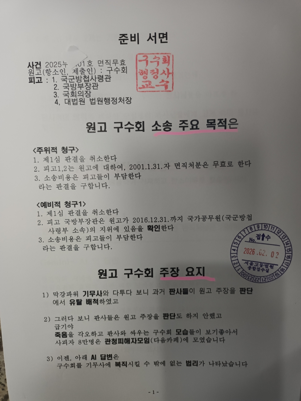 2026. 2.2 위 원고 구수회 010-8369-2113