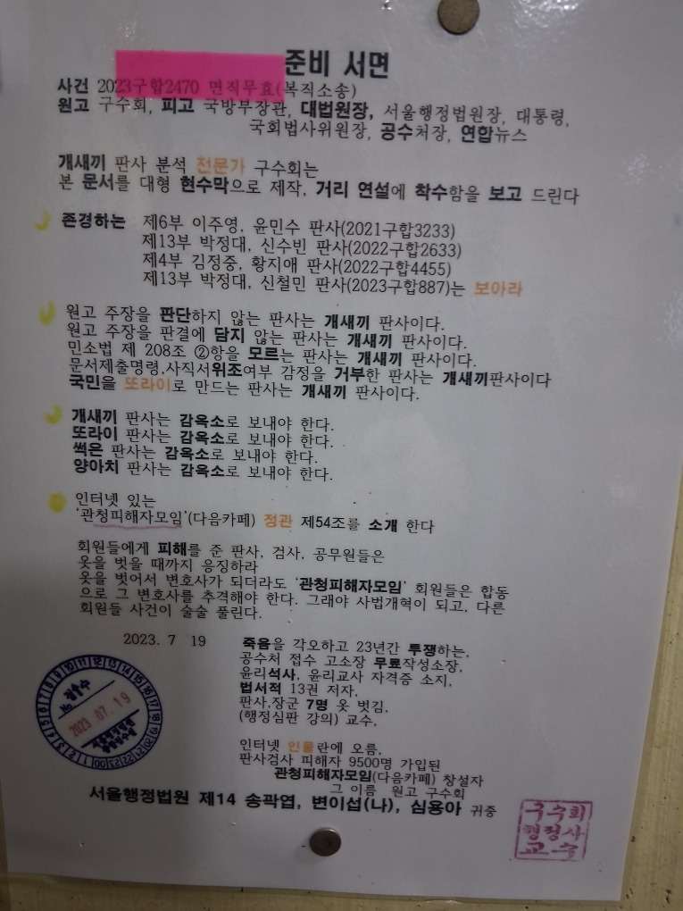 5월8일3시40분 1별관 306호(서울고법) 구수회 1인시위 ,그리고 구수회 기무사 복직소송 승소예단