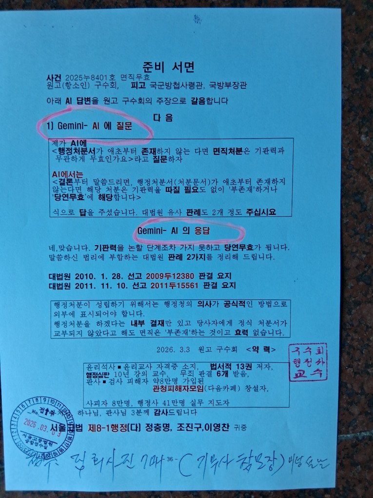 답댓글 작성자교수구수회,판사장군7명날림,무죄5개 작성자 본인 여부 작성자 작성시간 26.03.02 이광희 국장님 위 제 문서를 이해 하셨군요