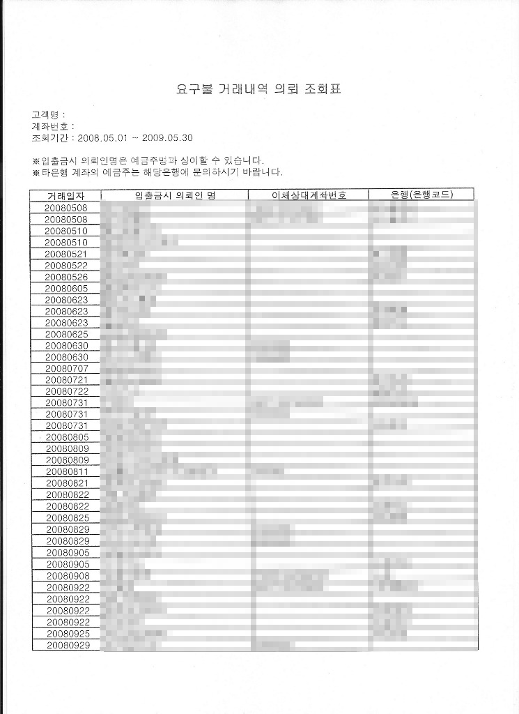 한가지더 추가로 말씀드리면 수표의 경우(이 역시 계좌번호가 남지 않습니다.)에는