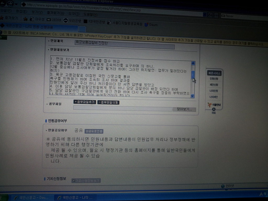 3사관학교 생도생일빵 ."위증 " 조사촉구를 신문고에 재차신청 작성자young-a|작성시간12.12.09|조회수53 목록 댓글 2 글자크기 작게가 글자크기 크게가 수차례 여러경로로 조사촉구를 한것을재차 신문고에 2차 촉구민원을 제출했습니다 다음검색 현재 게시글 추가 기능 열기 북마크 공유하기 신고 센터로 신고 댓글 댓글 2 댓글쓰기 답글쓰기 댓글 리스트 작성자시 향기 | 작성시간 12.12.09 고생이 많으십니다. young-a 님도 어려운 싸움을 하고 계십니다.꼭 필승하시기 바랍니다. 작성자young-a 작성자 본인 여부 작성자 | 작성시간 12.12.09 촉구에 대한 근거를 마련해놓지 않으면 계속적으로미룰까하여 신문고에 조사촉구민원을.. 댓글 전체보기